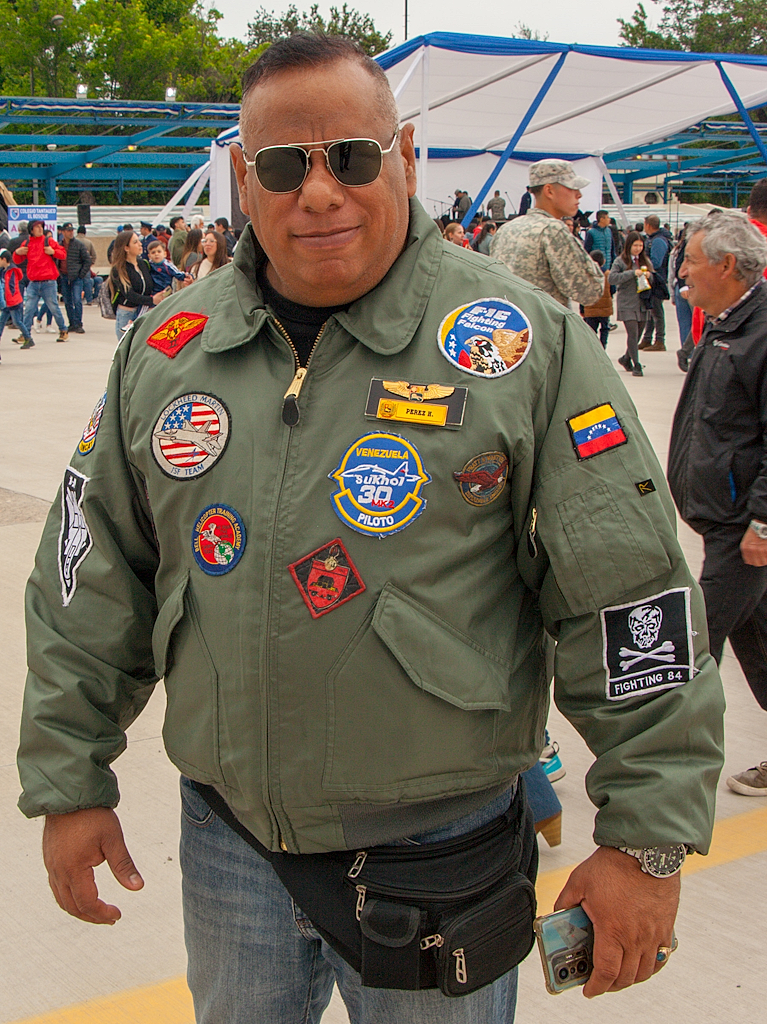 Con la creciente inmigración venezolana, tarde o temprano nos íbamos a encontrar con entusiastas de esa nacionalidad asistiendo a festivales aéreos chilenos con vestimenta y escudos de ese origen (foto: Carlos Ay).
