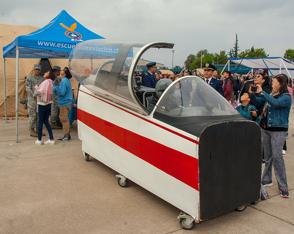 Tras pasar el control de ingreso, los asistentes ingresábamos a la losa operativa de la Escuela de Aviación del Capitán Manuel Ávalos Prado, donde se podían visitar varios stands institucionales, puestos de comida y locales de venta de souvenirs al son de la música en vivo de la «Big Band» de la FACH.
