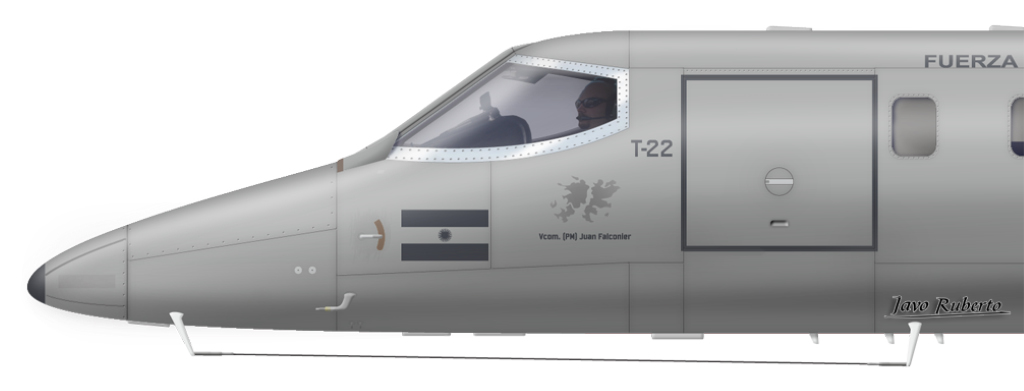 Para el caso de los Learjet 35A, la propuesta es no afectar los verificadores de radioayudas, cuyos timones ya están «copados» por marcas de alta visibilidad específicas de su función; pero sí adaptar el de los ejemplares fotográficos con la Cruz del Sur del escudo del GA2 y el especializado en inteligencia electrónica con el cuervo que distinguía al Grupo de Guerra Electrónica, unidad precursora de esta especialidad en la FAA.