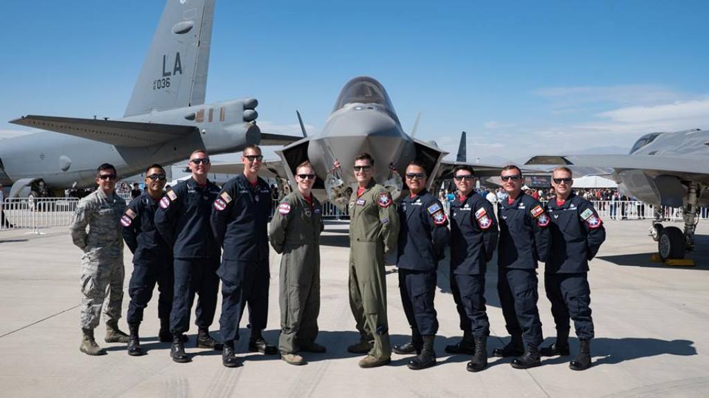Si bien no fue este el caso ya que ambas aeronaves llegaron sólo para exponerse estáticamente, la delegación fue de todos modos liderada por el jefe de escuadrilla, capitán Andrew «Dojo» Olson, piloto de combate con más de 1.500 horas de vuelo, de las cuales 480 corresponden a 61 misiones de combate sobre Irak, Siria, y Afganistán en las que lanzó 69 «bombas inteligentes» contra blancos del Estado Islámico durante la operación «Inherent Resolve» (Resolución Inherente) entre octubre de 2014 y abril de 2015.