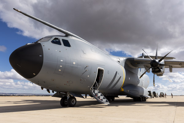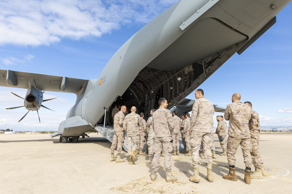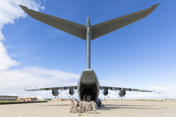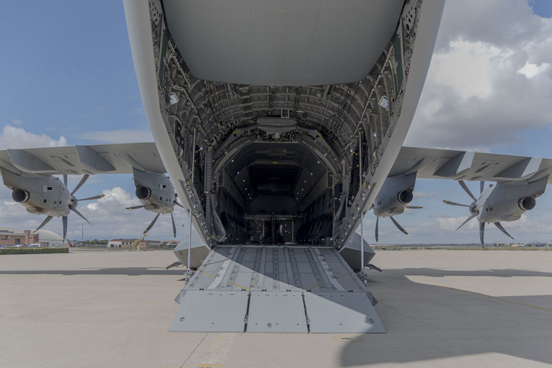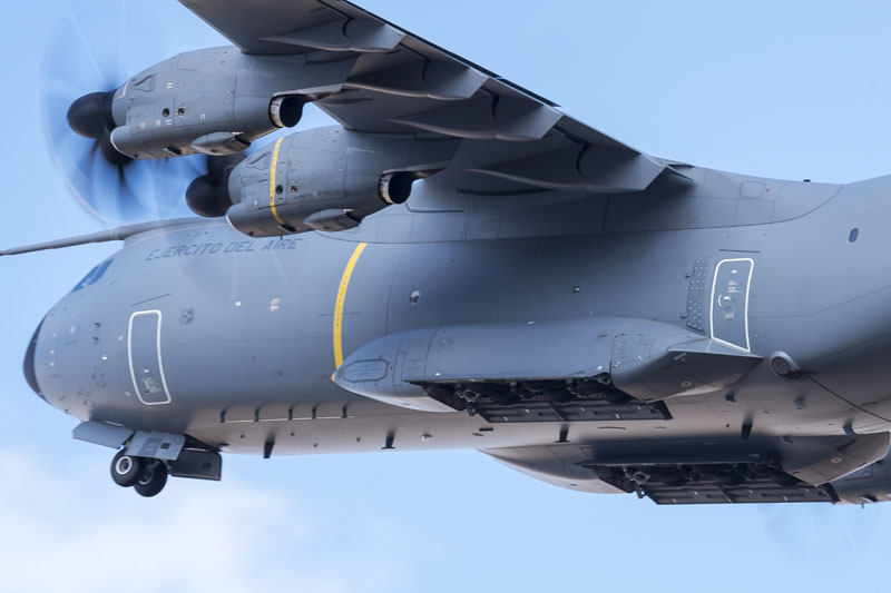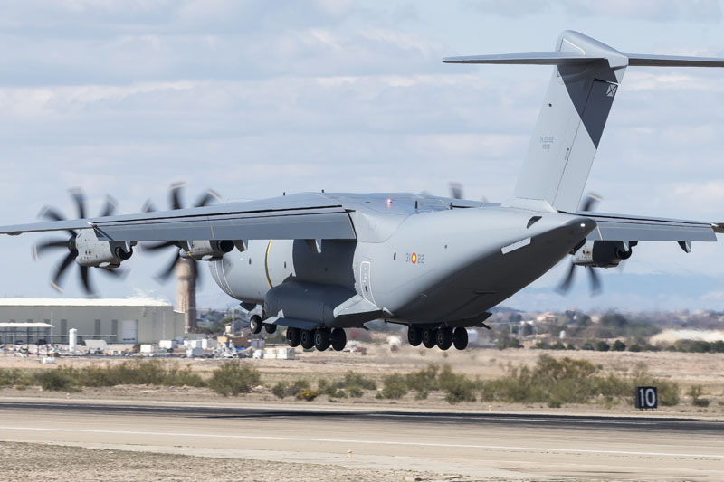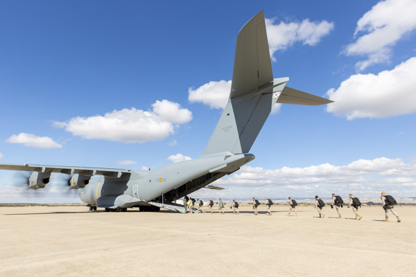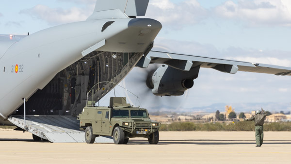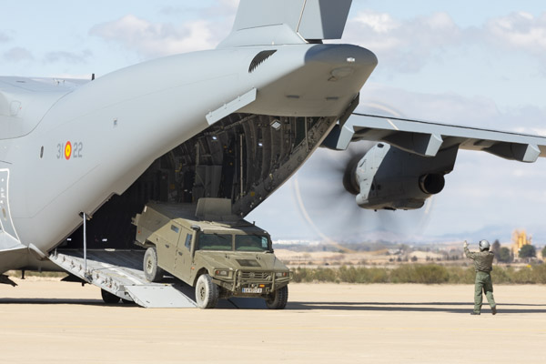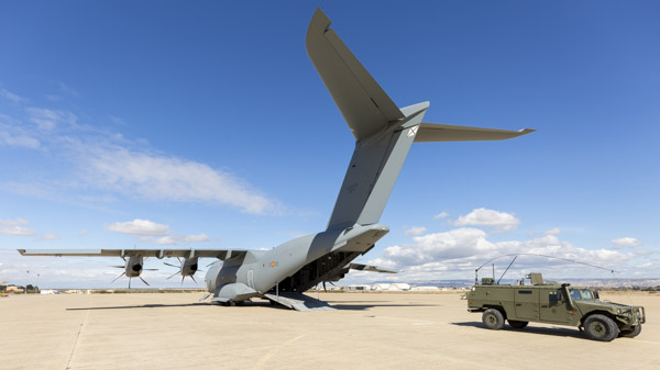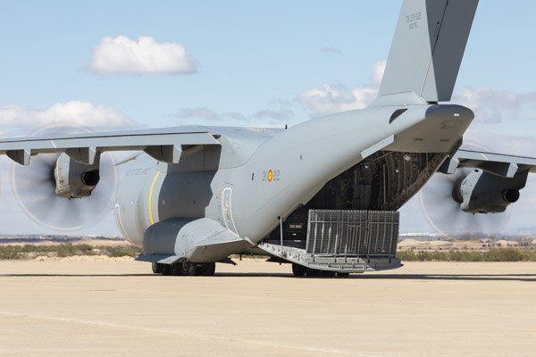Zaragoza, 8 de marzo de 2019. La mañana es soleada en la Base Aérea de Zaragoza, algunos cúmulos decoran el azul intenso del cielo invernal. En la plataforma del Escuadrón de Apoyo al Despliegue Aéreo (EADA) un T.23 del Ala 31 espera con la rampa abierta. El programa A400 en el Ejército del Aire sigue avanzando y las capacidades de la aeronave se van integrando sin pausa en el operativo diario de la fuerza aérea española. La presencia de personal del Centro Logístico de Armamento y Experimentación (CLAEX) no es casualidad, hoy es una jornada especial en la historia del T.23 en España.