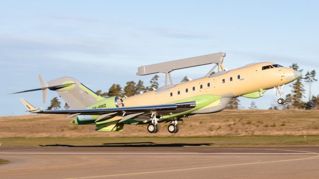 El sistema GlobalEye, implementado en plataformas Bombardier Global 6000-BD-700-1A10 modificadas con un conjunto de sensores avanzados, en el cual predomina el radar dorsal de apertura sintética Erieye ER, realizó un vuelo de prueba de 2:52 hs. de duración, recolectando datos de prueba.