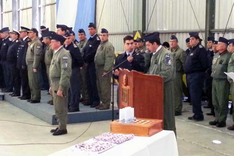 Hasta dicha unidad, se destacó el Fokker F-28 Mk1000C TC-54 del Escuadrón II Fokker F-28, el cual desde la Aeroestación Militar Aeroparque trasladó al Jefe del Estado Mayor General de la Fuerza Aérea, Brigadier General Mario Callejo para presidir la ceremonia, además de diversas autoridades militares e invitados especiales. Asimismo, desde la Escuela de Aviación Militar, como complemento al traslado de autoridades invitadas desde otras unidades del interior del país, se destacó una de las máquinas de la IX Brigada y que también presta servicios con LADE, tratándose del SAAB SF-340B T-34.