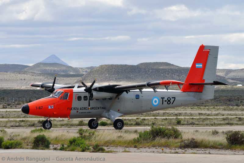 | FAA – IX Brigada Aérea | De Havilland Canada DHC-6-200 Twin Otter | T-87 | C/n 158. Ex LV-PLM, LV-JMD, LV-JMP «Mocoví» Aerochaco Lineas Aéreas Chaqueñas, transferido a la FAA en 1982. Segundo Twin Otter con esta matricula en la FAA. En vuelo. |
