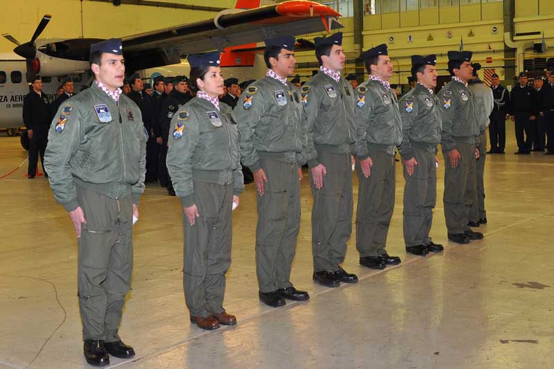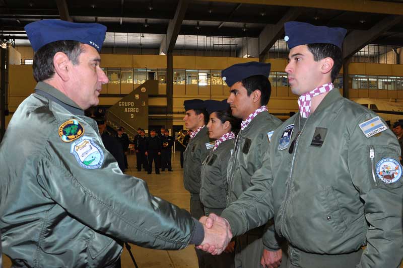 Posterior a ello, dentro de los hangares del GT9 se convocaba a todos los presentes para el inicio de la habitual ceremonia donde los flamantes aviadores de transporte, recibieron de manos de sus instructores sus respectivos diplomas, pañuelos y escudos que pasan a identificarlos como tales.