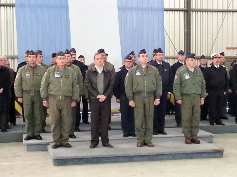 En una parcialmente nublada y algo fría mañana chubutense, la aeronave que trasladaba a la máxima autoridad de la fuerza, fue apropiadamente escoltada al llegar a Comodoro Rivadavia por el T-34 hasta realizar su circuito de aproximación final y posterior aterrizaje al Aeropuerto Internacional «General Enrique Mosconi». Allí fueron recibidos por Jefe de la IX Brigada Aérea Brigadier Guillermo Alsúa, autoridades civiles, militares, e invitados especiales locales convocados para tal evento. Seguido de ello, realizaba su aterrizaje por pista 25 del aeropuerto y posterior rodaje hacia la plataforma de la unidad, el anteriormente citado SAAB, completando así el contingente de personal invitado para esta jornada tan especial en la vida de un aviador militar.