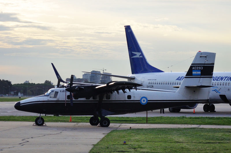 | Dirección de Aviación del Ejército Argentino | De Havilland Canada DHC-6-300 Twin Otter | AE-263 | C/n 594. Batallón de Aviación de Apoyo en Combate 601. En plataforma Aeroestación Militar Aeroparque. |