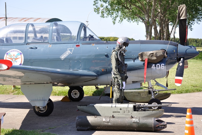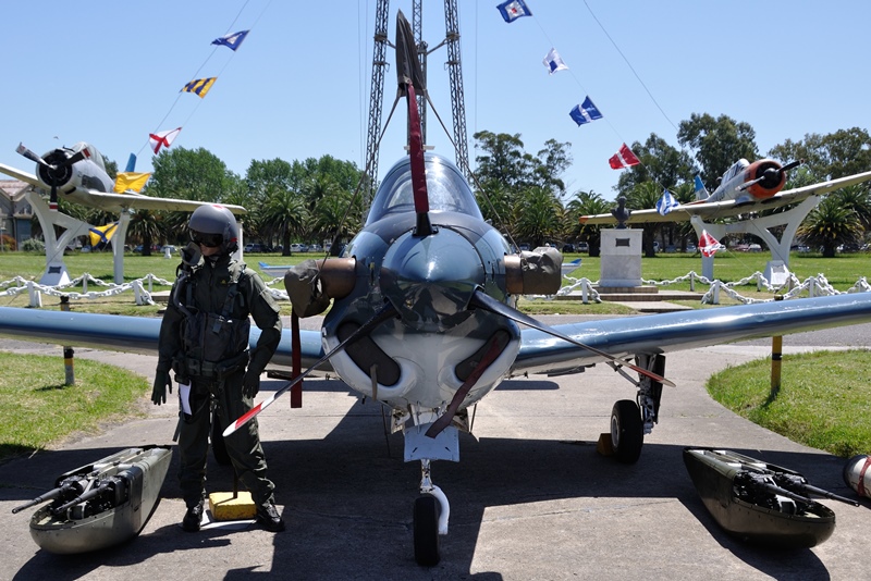 Los 1-A-414 y 1-A-415 se encontraban frente al Hangar 9 Capitán de Fragata Sergio Gómez Roca, que es utilizado por la Escuela. Lindero a la plaza de armas se hallaba el 1-A-406, exhibido con una balsa inflable RFD Aerolite, un paracaídas CP47-26, un bote inflable RLU-18, un casco de vuelo Gentex HGU-55/P, un maniquí vestido con la indumentaria de vuelo que utiliza un piloto de Turbo Mentor y algunas de las armas que puede portar, como la bomba de ejercicio de 250 libras, la cohetera LAU-32, la cohetera Yaguareté y los contenedores Matra de ametralladoras dobles de 7,62 milímetros.