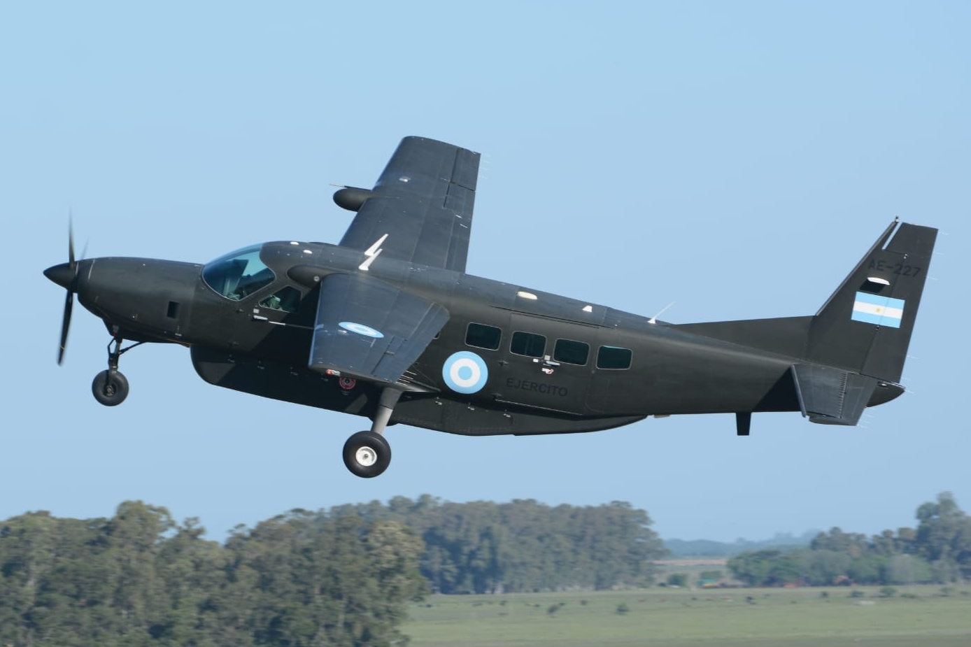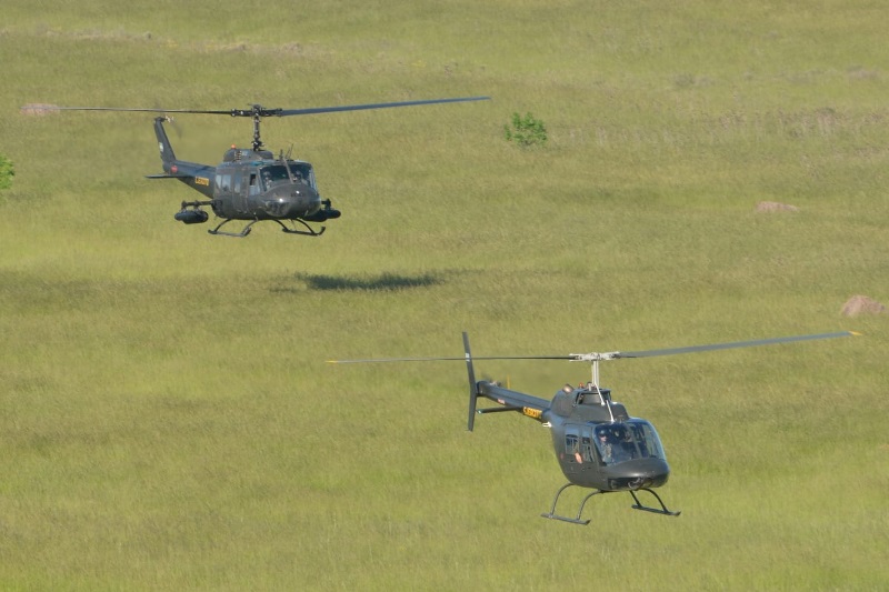 Al mismo tiempo que eran hangarados los aviones del Comando de Aviación Naval (COAN), los del Comando de Aviación de Ejército (Cdo Av Ej) eran puestos en marcha para su despedida. El Grand Caravan se despidió primero realizando varias pasadas y el 206 junto al UH-1H cerraron el open day con una en formación, donde se pudo observar al primero, ser tripulado por una piloto recientemente recibida en la Escuela de Aviación de Ejército Coronel Arenales Uriburu (Esc Av Eje) y al Huey en algún momento rozar con sus patines el pastizal que se encuentra entre la pista y la calle de rodaje.