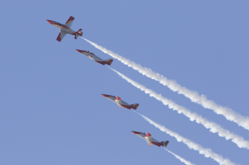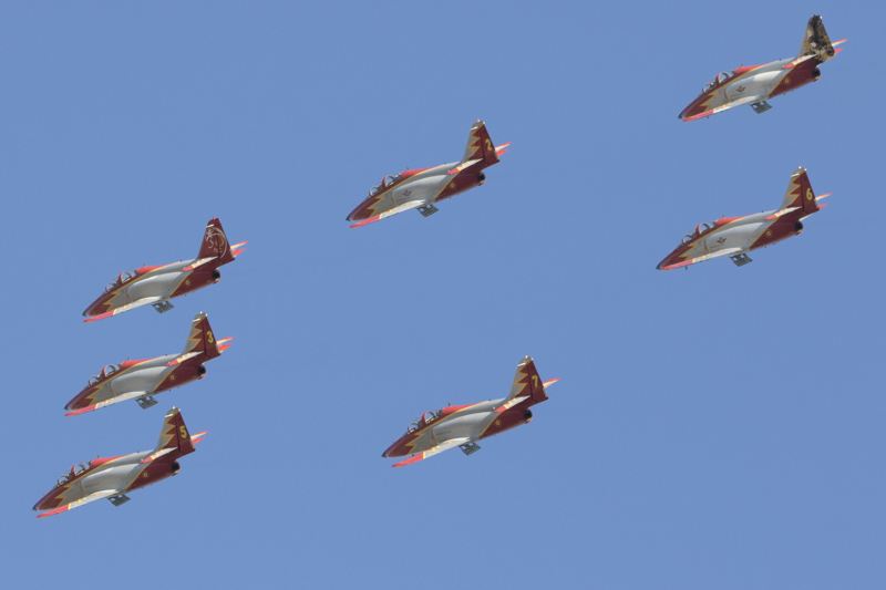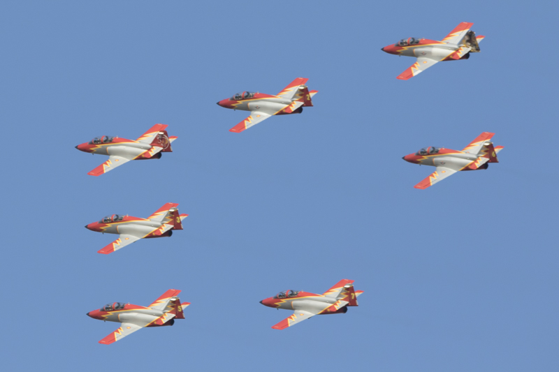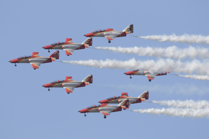 La traca final y fin de fiestas, lo puso la Patrulla Águila del EdA. Como siempre una destacada y precisa actuación. Se agradece que la duración del show sea extensa y de tiempo a disfrutar tranquilamente del equipo acrobático español.