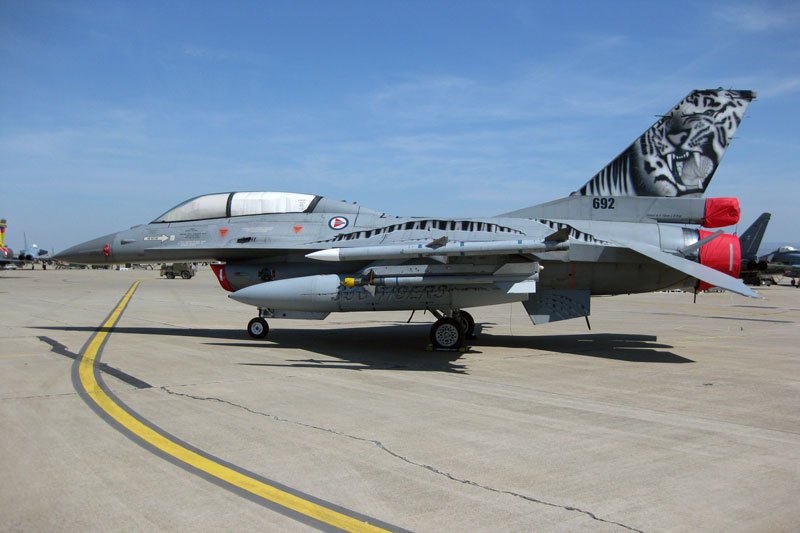 Tras ellos, despegó el F-16 belga, todo un clásico que hizo las delicias del público asistente.