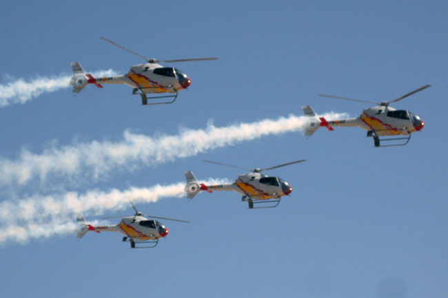 Volvió a llamar la atención del público la patrulla ASPA. Sin duda brindan el espectáculo singular, y poco frecuente, de las acrobacias aéreas con helicópteros.