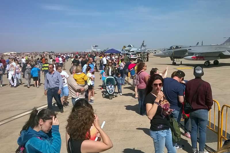 En esta ocasión, y previendo una gran afluencia de público, el Ejercito del Aire abrió las puertas de la base desde la 8:00 de la mañana. El acceso vehicular estuvo controlado por la Guardia Civil, que como es su tarea brindo su apoyo para gestionar una masiva llegada de coches a las inmediaciones de la base aérea.