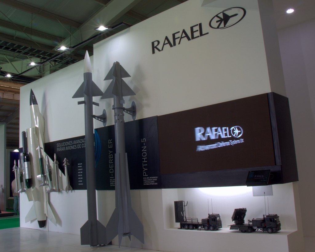 En la última edición de la feria chilena, Rafael se presentó con un llamativo stand a la entrada del pabellón D en el cual mostraba maquetas, displays y exhibiciones interactivas de su variada gama de soluciones de defensa aérea, combate aire-aire y aire-tierra, misiles electroópticos, blindaje activo y C4I (comando, control, comunicaciones e inteligencia).