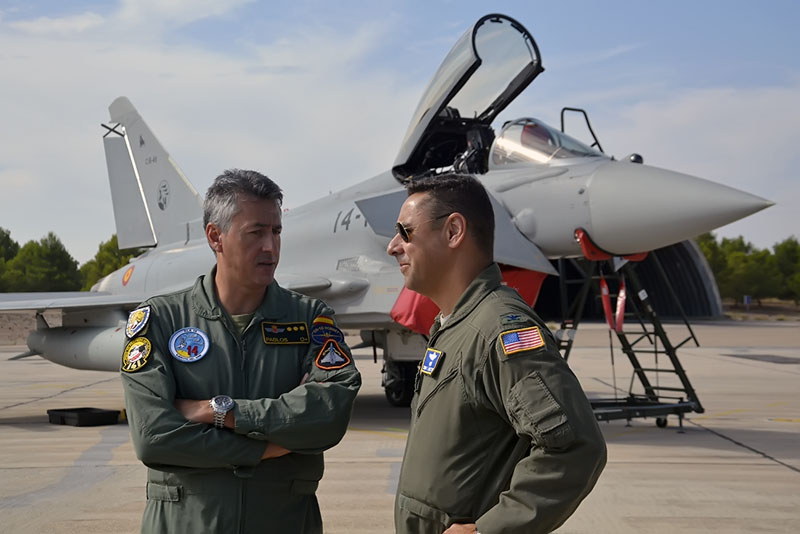 En Los Llanos, el personal del EA y aquel destacado en el TLP pudieron conocer en detalle a máquinas y tripulaciones norteamericanas. También realizaron diversas actividades de adiestramiento en vuelo conjunto con los Eurofighter y EF-18M.