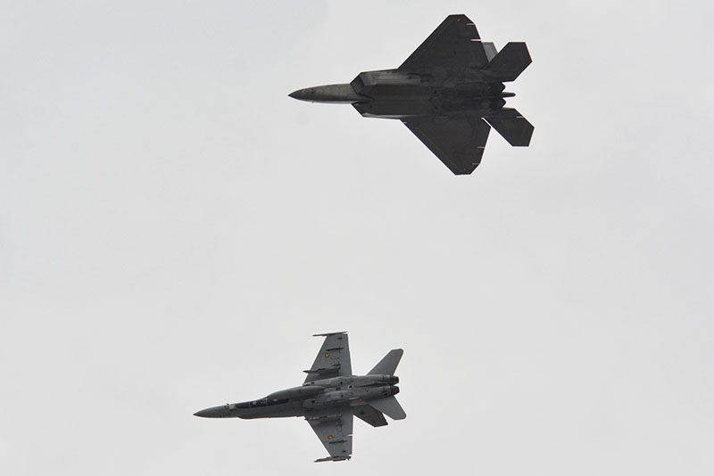 Inicialmente los F-22A procedieron a realizar un reabastecimiento en vuelo, para continuar uno a enfrentar dos EF-18M del 122 Escuadrón procedentes del Ala 12 de Madrid (finalmente fue un solo avión), y el otro Raptor a enfrentar a dos Eurofighters del Ala 14 de Albacete. Ya en las respectivas zonas de trabajo, se produjeron sendos ejercicios de combate disimilar.