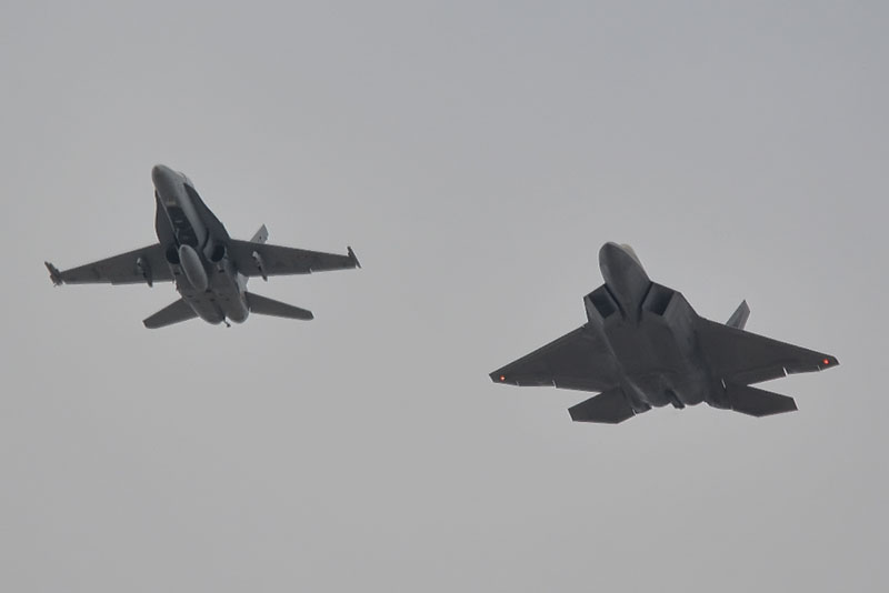 Por otro lado, el trabajo con los Hornets fue planificado de manera similar, un F-22A vs. 2 EF-18M, pero uno de los Hornets abortó la misión.