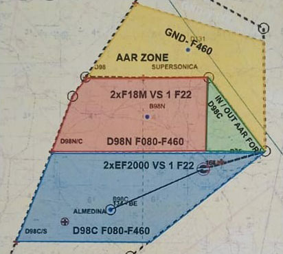 Según lo planificado, se realizaron ejercicios de instrucción de combate cercano en los cielos españoles. Ellos consistieron básicamente en dos misiones independientes en la zona de vuelo designada a tal efecto (D98N dividida este-oeste).