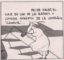 La historieta que hoy mostramos fue publicada en el número 3 de 1937 de la revista de a bordo de los vuelos del Sindicato Condor (una aerolínea de bandera brasileña controlada por Lufthansa). Es, sin duda, una copia de la exitosa creación de McManus, pero tiene un claro objetivo comercial, cual es mostrar que una señora burguesa de aquellos tiempos podía hacer un rápido viaje internacional para visitar a sus amigas (lo que hoy llamamos VFR travel), ampliando así el espectro de los potenciales viajeros aéreos.