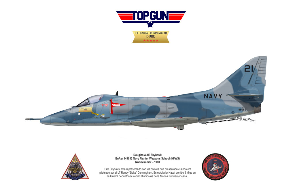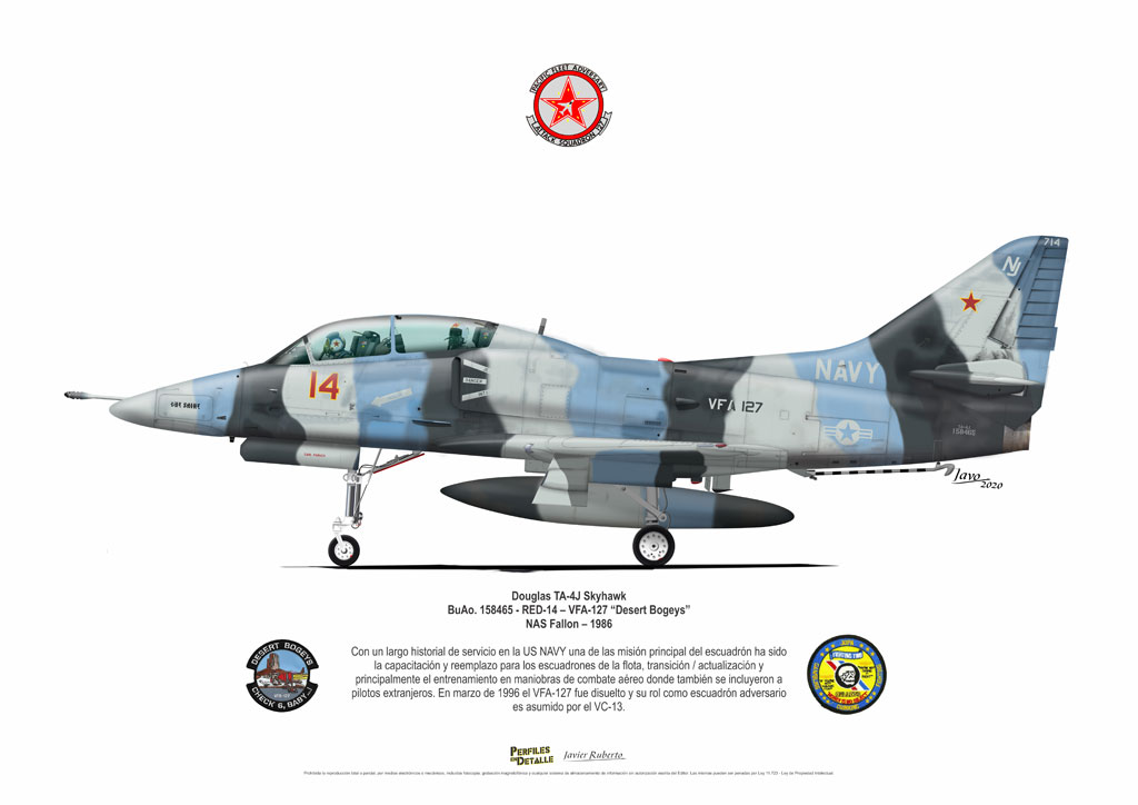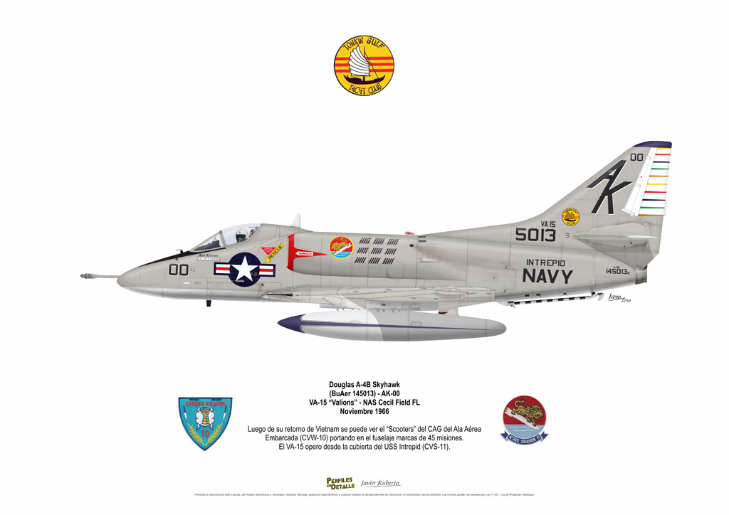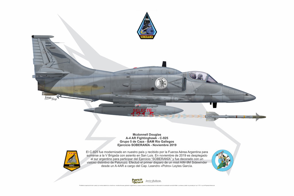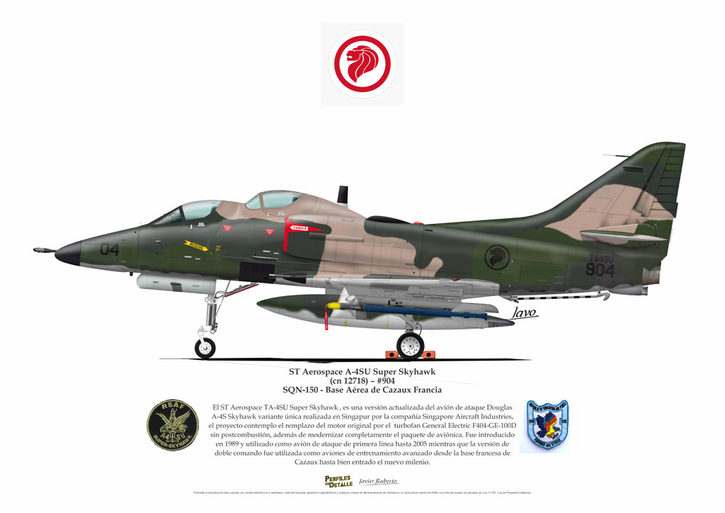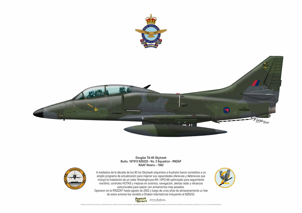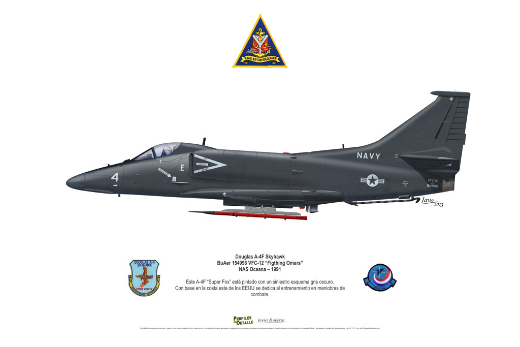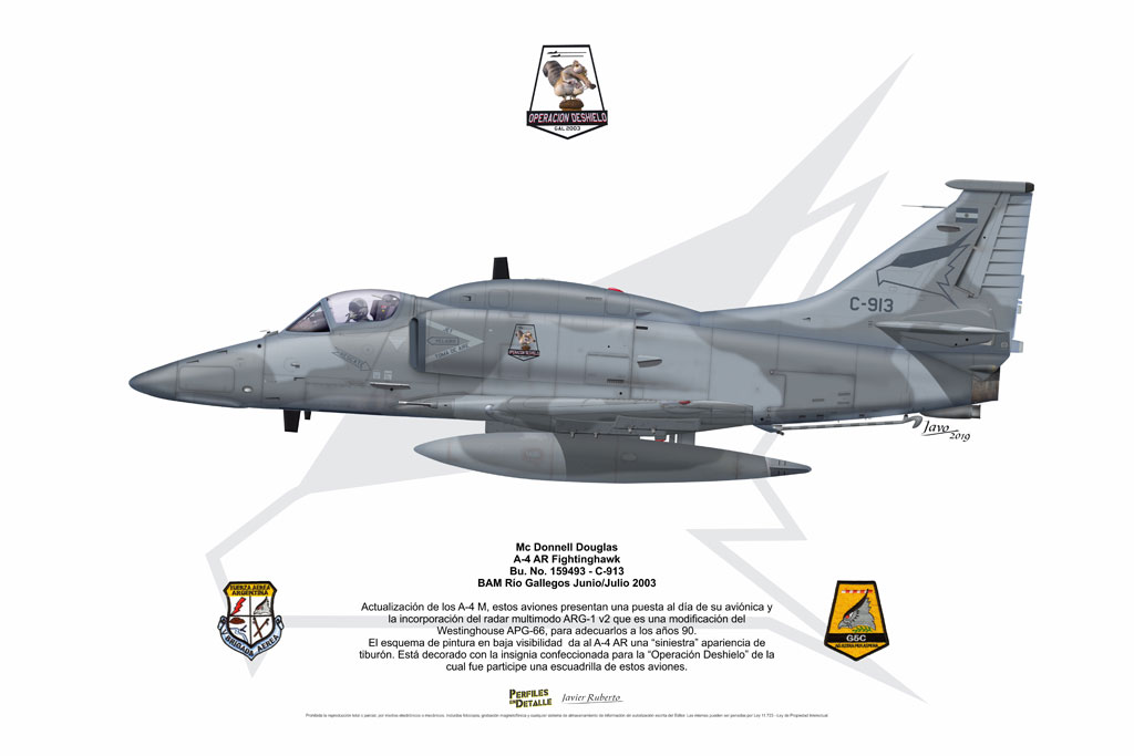 El Douglas A-4 Skyhawk, avión de ataque con capacidad para operar desde portaaviones, fue diseñado por Edward H. Heinemann en la década del ´50 para la USN (United States Navy) y la USMC (United States Marine Corps). El 22 de junio de 1954 se registró su primer vuelo. Mientras que el último aparato producido salió de la fábrica de Douglas Aircraft Co. Inc., ubicada en Long Beach-California, el 27 de febrero de 1979. En este periodo el total de aviones construidos fue de 2.960 unidades.