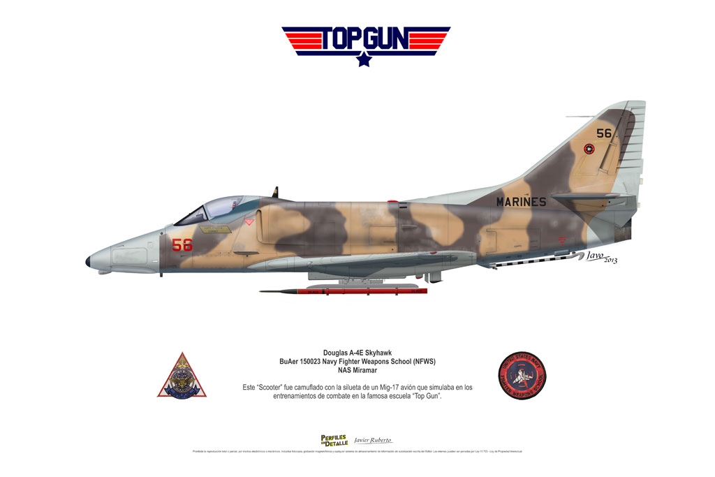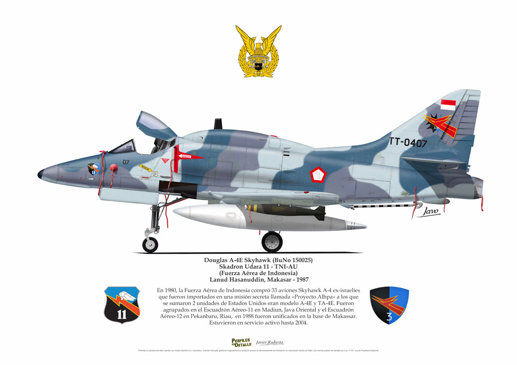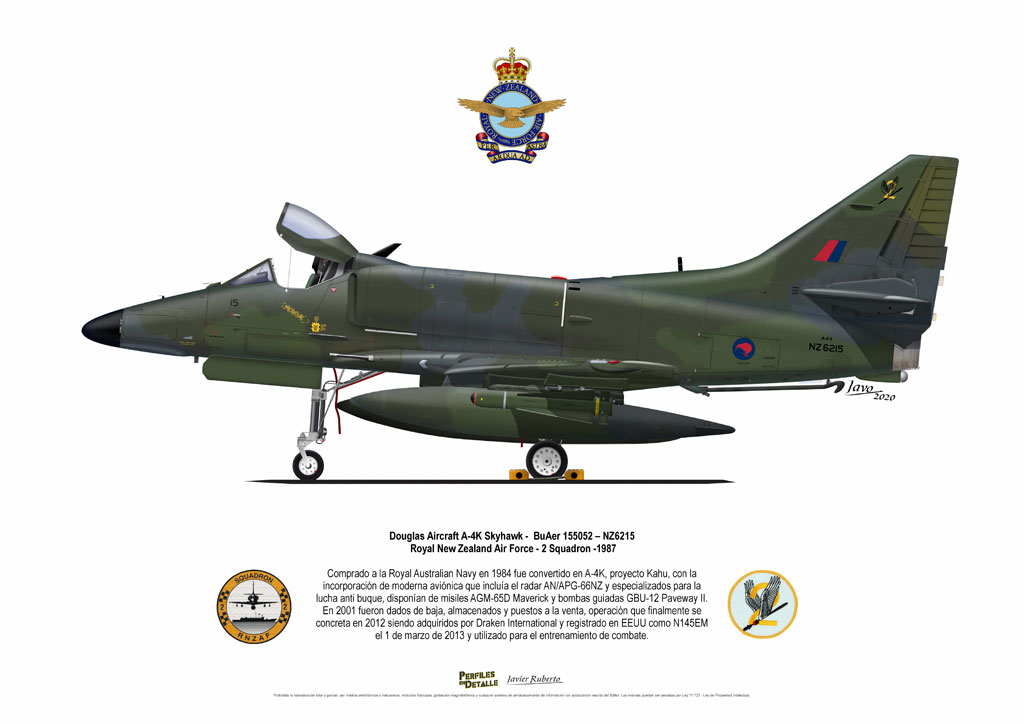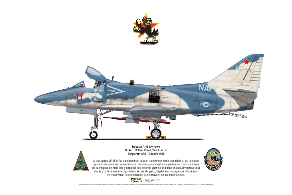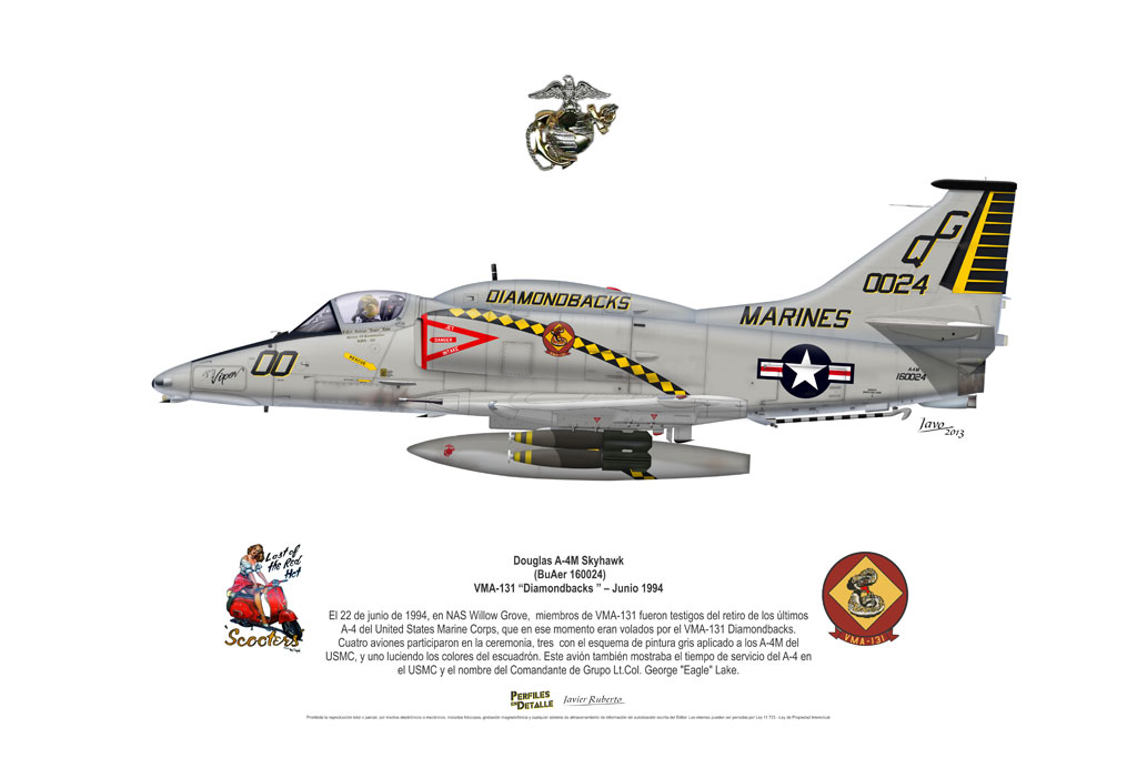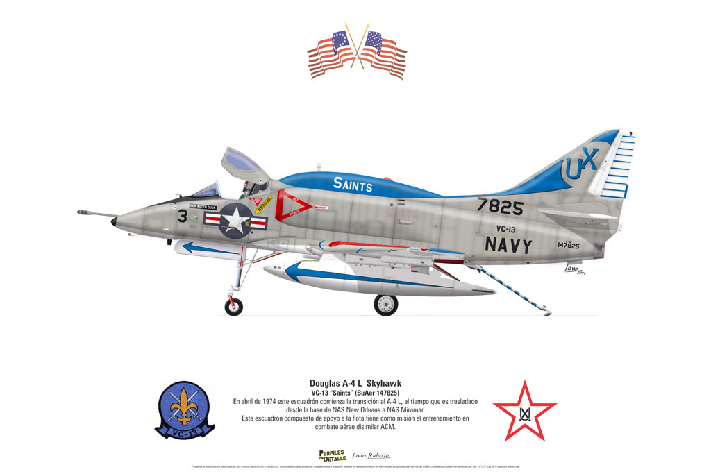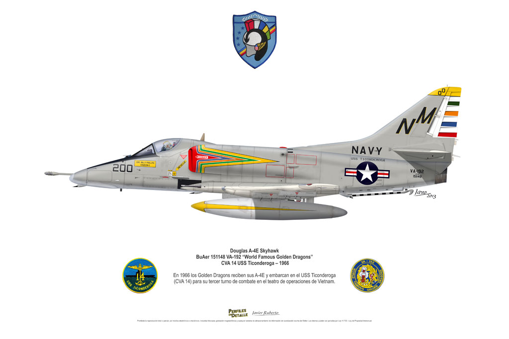 El Douglas A-4 Skyhawk, avión de ataque con capacidad para operar desde portaaviones, fue diseñado por Edward H. Heinemann en la década del ´50 para la USN (United States Navy) y la USMC (United States Marine Corps). El 22 de junio de 1954 se registró su primer vuelo. Mientras que el último aparato producido salió de la fábrica de Douglas Aircraft Co. Inc., ubicada en Long Beach-California, el 27 de febrero de 1979. En este periodo el total de aviones construidos fue de 2.960 unidades.