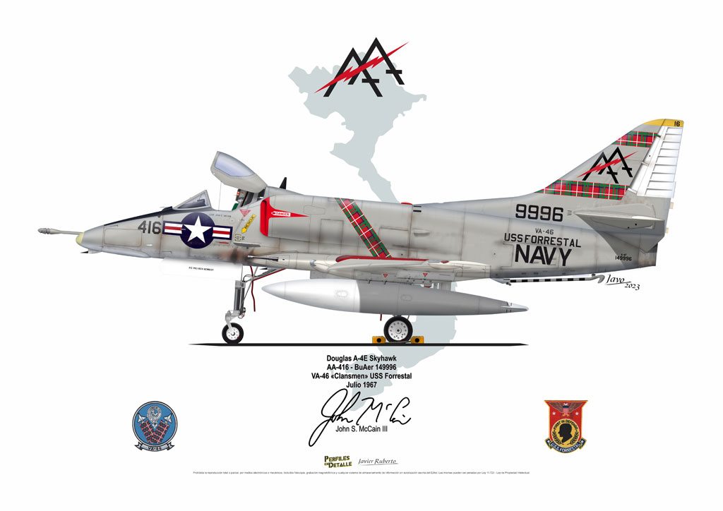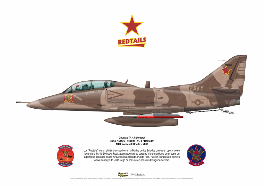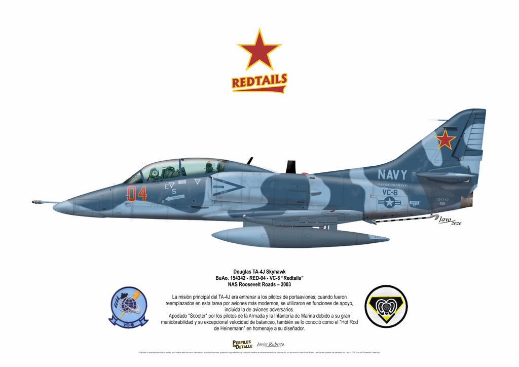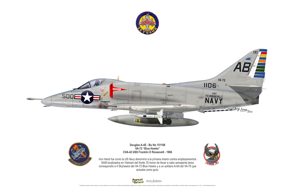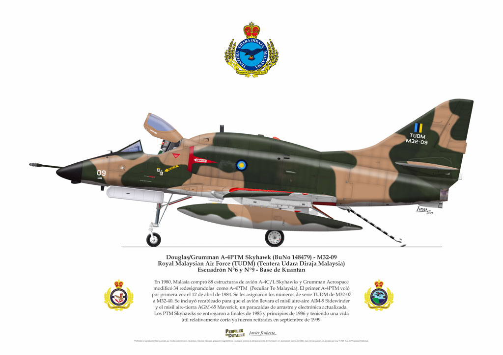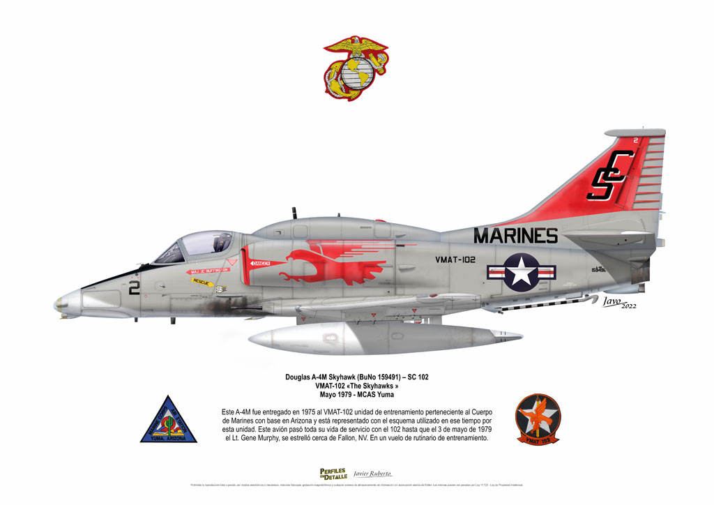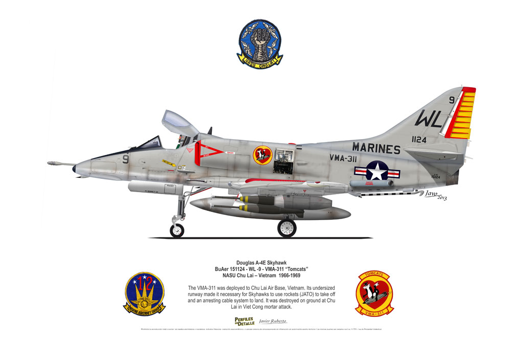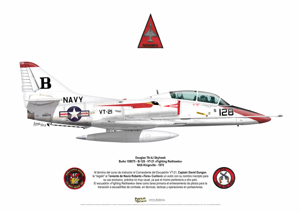 El Douglas A-4 Skyhawk, avión de ataque con capacidad para operar desde portaaviones, fue diseñado por Edward H. Heinemann en la década del ´50 para la USN (United States Navy) y la USMC (United States Marine Corps). El 22 de junio de 1954 se registró su primer vuelo. Mientras que el último aparato producido salió de la fábrica de Douglas Aircraft Co. Inc., ubicada en Long Beach-California, el 27 de febrero de 1979. En este periodo el total de aviones construidos fue de 2.960 unidades.