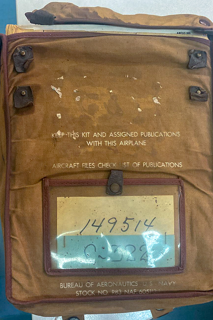 Bolsa de historial del Skyhawk 149514/C-322, conservada en el MNA (foto: Departamento de Investigaciones Históricas del Museo Nacional de Aeronáutica vía Walter Marcelo Bentancor).