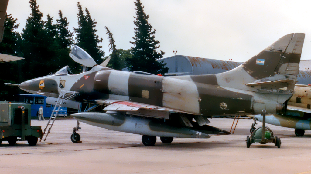 Al llegar a nuestro país no contaba con documentación técnica y conservaba los colores e insignias de la USN, muy similar a toda la flota argentina de A-4C.