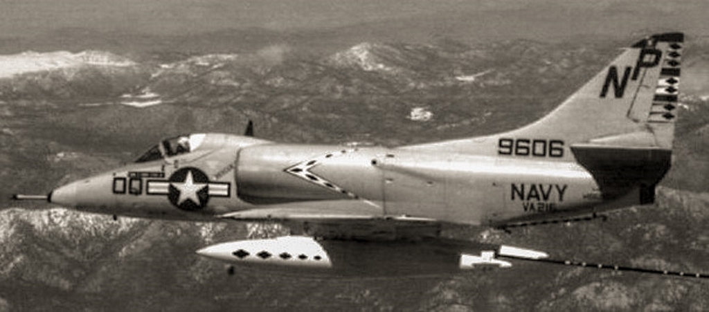 VA-216 en NAS Lemoore, California, “NP600” (1962), “NP680” (1964) y NAS Cubi Point, Filipinas (1965), VA-192, a bordo del USS Bon Homme Richard y en NAS Atsugi, Japón (1965) ), VA-93, a bordo del USS Independence, “NG304” (1966), VA-55 en NAS Lemoore (1966), VA-22 en NAS Lemoore (1967), VA-112 en NAS Lemoore (1967), VA- 125 en NAS Lemoore (1967), VA-873 NAS Alameda, California (1968), VA-125 en NAS Lemoore (1968) y VC-1 en NAS Barbers Point, Hawaii, “UA45” (1969).