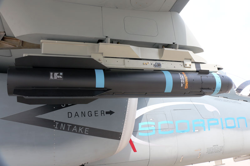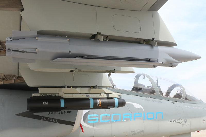 El uso de la bodega del avión para instalar un depósito de combustible permite aumentar la capacidad internad de carburante para darle un alcance de 2900 km, manteniendo las seis estaciones de armamente bajo las alas libres. Esto le da al Scorpion un radio de combate o tiempo en estación, de un potencial inigualable por otra aeronave de su categoría y que lo equiparan en potencial a plataformas mucho más onerosas de adquirir y operar.