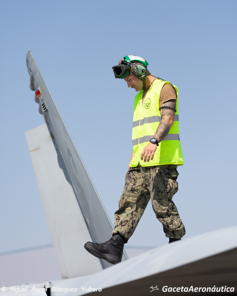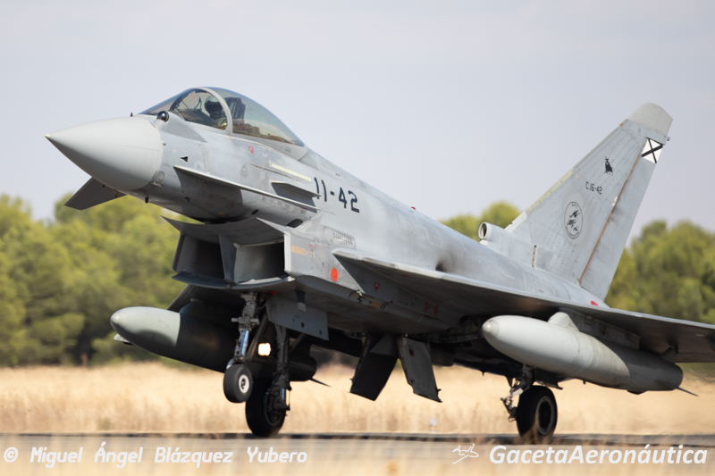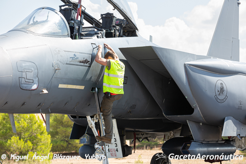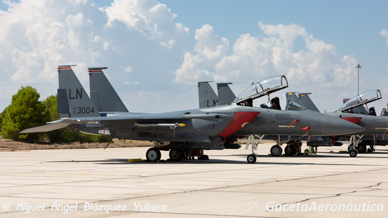 La plataforma de la Base Aérea de Albacete rebosa actividad. Son las 12 de la mañana del 22 de septiembre y bajo un sol de justicia el personal de tierra prepara minuciosamente las aeronaves que en poco menos de tres horas saldrán a volar unas de las misiones que han de superar las tripulaciones para ser graduados en el Tactical Leadership Programme (TLP).