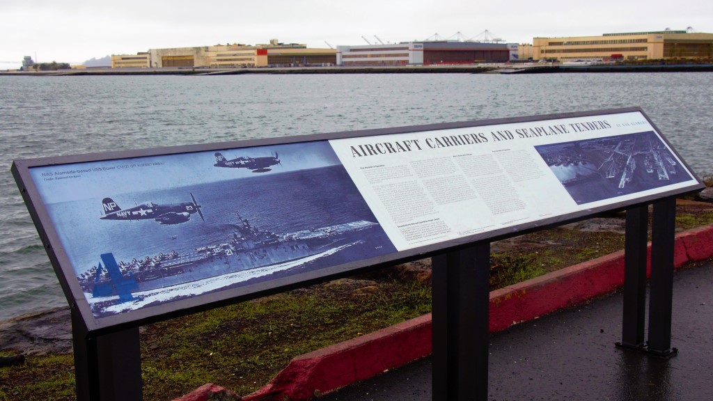 Antigua sede de la estación aeronaval homónima, Naval Air Station (NAS) Alameda, sus terrenos se transformaron parcialmente en construcciones habitacionales tras el cierre de la base en 1997 y la mayoría de sus instalaciones permanecen en su lugar, ya sea abandonadas o bien recicladas por una variedad de emprendimientos civiles.