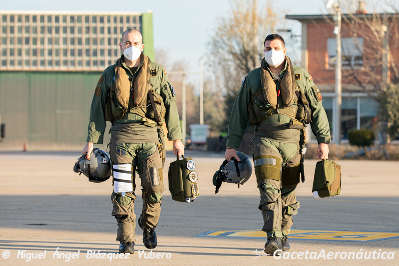 Tras 45 minutos de vuelo ambos aviones toman tierra en la pista zaragozana, el ambiente en la plataforma del Ala 15 es más distendido, hay que dar la enhorabuena a los protagonistas de la jornada. A partir de este momento los manguerazos de agua y los brindis con los compañeros marcarán el final de este vuelo tan importante para todo piloto de EF-18, su suelta. Se trata de una forma de dar la bienvenida a los nuevos miembros de la familia, una forma de pasar a formar parte de la élite de la aviación de caza. Para ellos arranca su etapa más intensa en el Ejército del Aire, tras años de esfuerzo y aprendizaje se abre por delante una etapa en las que estarán en la cúspide de su carrera como pilotos de combate.