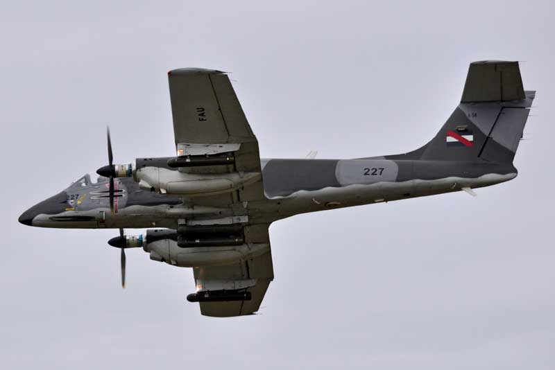 Avanzada la mañana hizo su arribo un FMA A-58 Pucará del Escuadrón Aéreo Nº 1 (Ataque) y tras efectuar un pasaje rasante procedió a ocupar su lugar en la plataforma, el mismo portaba un TER (Triple Ejector Rack) en la estación ventral, del que pendían tres coheteras LAU-131 y una cohetera similar por cada estación alar.