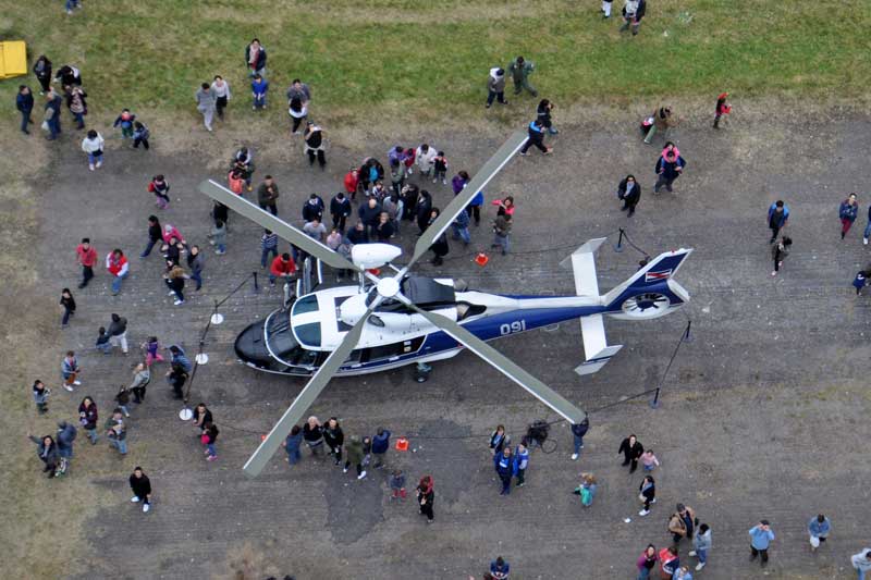 Tras ello nuevamente fue el turno del Huey que realizó un vuelo con los medios de prensa para la toma de imágenes en altura.