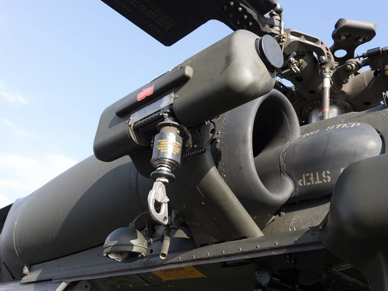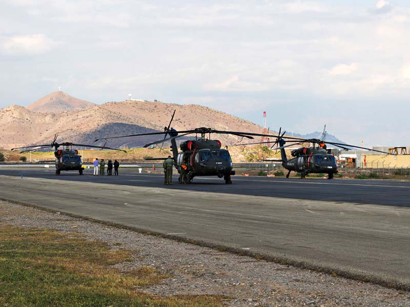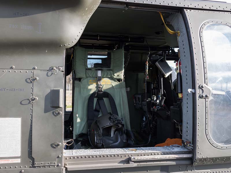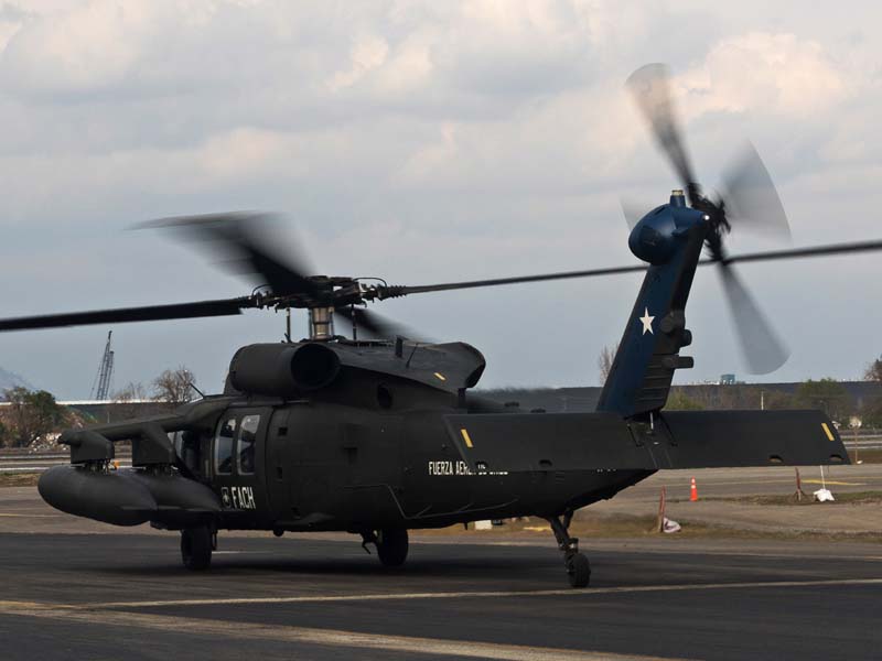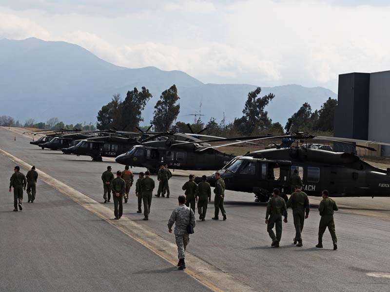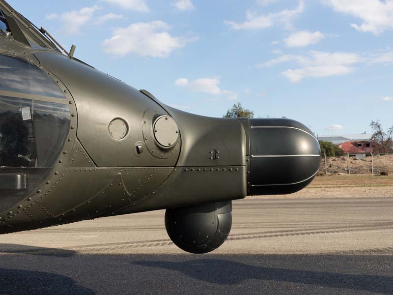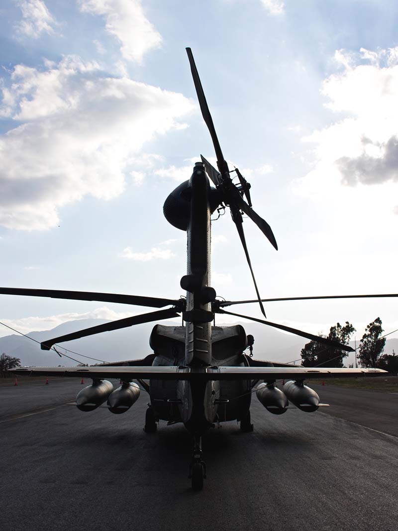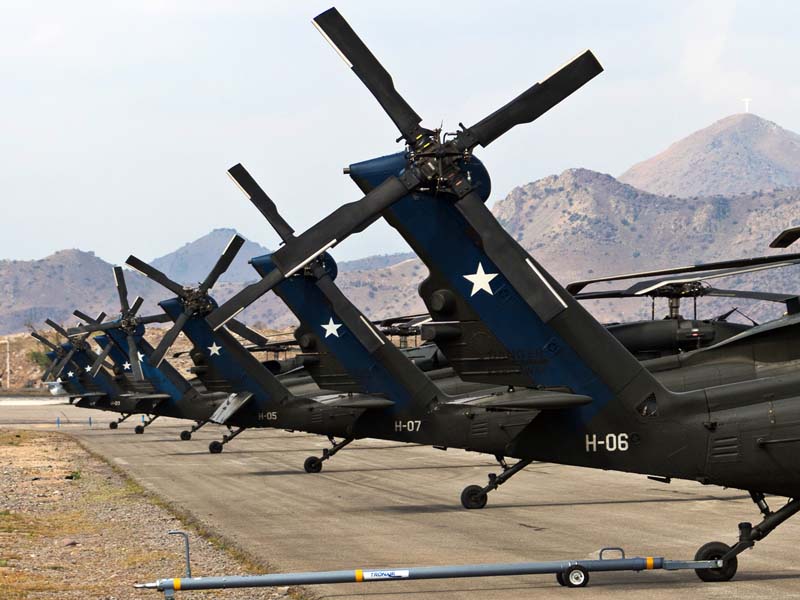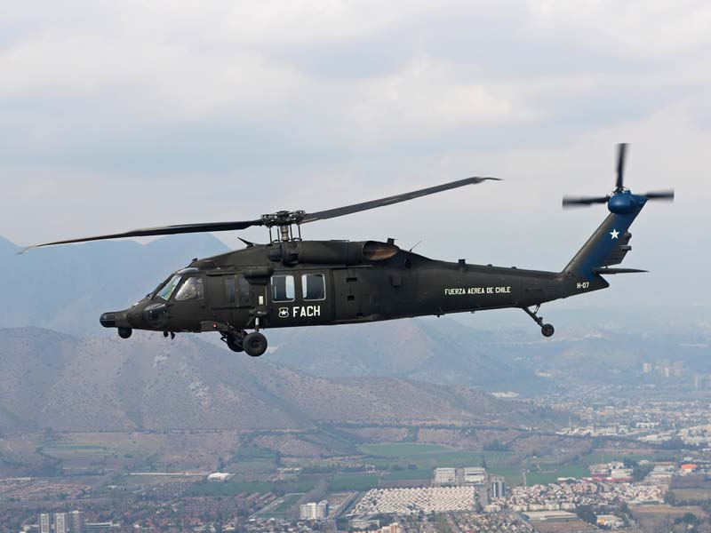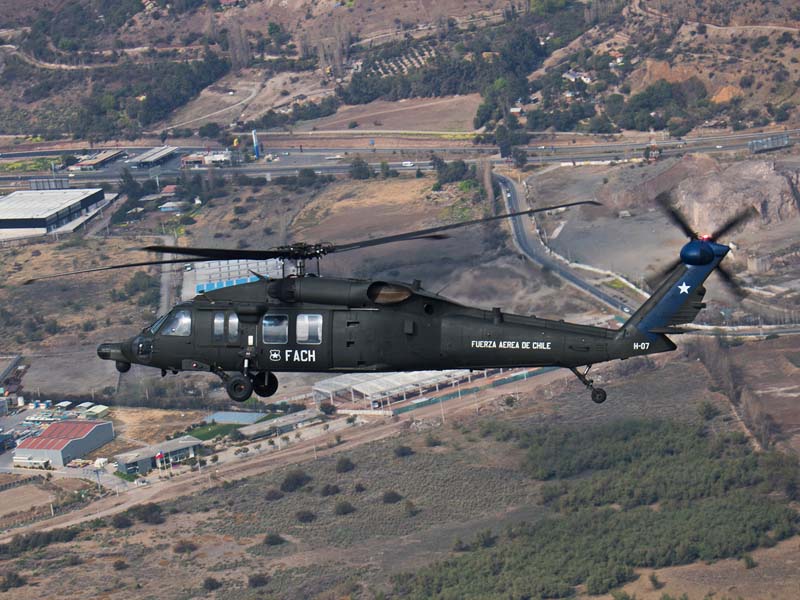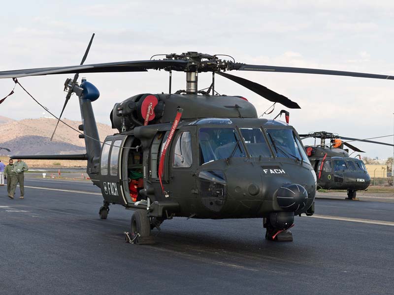 Arribado a la Base Aérea Pudahuel, faltaba saber aún en qué tipo de aeronave volaríamos sobre el parque O´Higgins. Si bien en años anteriores se habían presentado formaciones incluso con los 4 modelos de helicópteros mencionados, en la preparatoria del desfile de este año solamente se habían presentado Bell UH-1H y Sikorsky Blackhawk (dos de cada uno). Esperando en la sala de embarque del Grupo N° 10 de transporte al resto del grupo de invitados que volaran en esta oportunidad (canales de TV y fotógrafos de otros medios), nos confirman que seremos parte de uno de los hitos en la presentación de la FACH en esta parada militar ya que por primera vez volarán juntos, 6 helicópteros Sikorsky Blackhawk. Una vez que llegamos a la pista de rodaje “Tango” vemos alineados los 7 Blackhawk que posee la institución. A pesar de estamos con el tiempo ajustado se puede aún hacer una caminata entre ellos y tomar algunas fotos. Cuando las tripulaciones comienzan a dirigirse a los helicópteros me señalan que estoy asignado al H-03. Este es un helicóptero de los primeros 3 recibidos en julio del año pasado y externamente se distingue por tener instalado un Flir (visión delantera por infrarrojos) bajo el radar meteorológico. Estas son dos de las avanzadas características de estos aparatos, ya que el radar meteorológico les permite a los pilotos tener una ventaja de 1 hora de anticipación versus el pronóstico climático que se les entrega antes de comenzar una misión, y en vuelo es vital sobre todo en zonas cordilleranas. Por su parte el Flir le permite una navegación segura en condiciones nocturnas apoyado con el uso de lentes de visón nocturna(NVG , Night vision goggles).