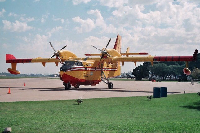 Desde el 21 de Abril al 2 de Mayo de 1997 nos visitó el Canadair CL-415 C-FZYS (c/n 2029) perteneciente al fabricante canadiense Bombardier. El avión fue sacado directamente de la línea de montaje en el Aeropuerto Internacional de Montreal y traído en vuelo desde el septentrional país; estimando la gente de ventas de la compañía que, de no ser vendido aquí, regresaría haciendo demostraciones por otros países de la región. El motivo de dicha visita fue exhibirlo en vuelo a autoridades de Defensa Civil y a la Secretaria de Recursos Naturales y Desarrollo Sustentable, como así también facilitar la evaluación por parte de pilotos y autoridades de Fuerza Aérea (FAA), Gendarmería y Prefectura. Esto merece una mención especial, pues la comisión técnica evaluadora de la máquina pertenece a la FAA (en el Edificio Cóndor ya habrían dicho que los pilotos cazadores se encargarían del pilotaje en caso de compra) y, mas allá de jurisdicciones y responsabilidades en la lucha contra el fuego, lo cierto es que nuestras fuerzas armadas y de seguridad hace mucho que no operan aviones anfibios.