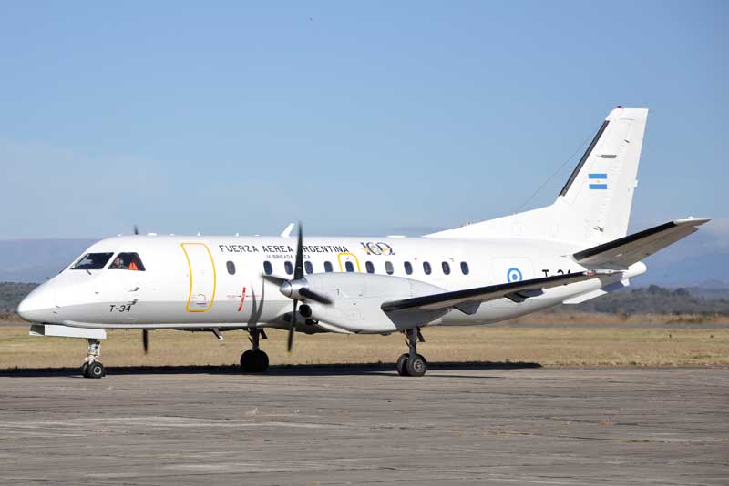 Saab 340B perteneciente a la IX Brigada Aérea encargado del traslado de personal de dicha unidad a la EAM. (Foto: Mauricio Chiofalo)
