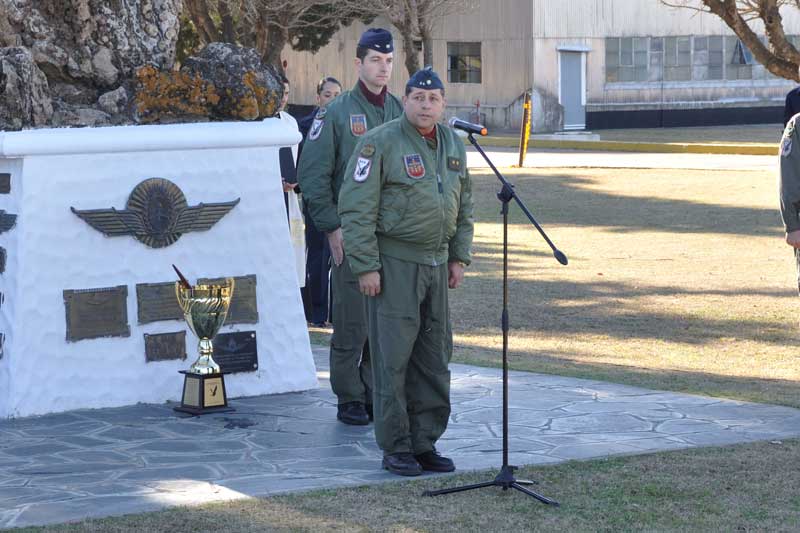 Finalizado esto se dio paso a la ceremonia, que tuvo su punto de partida con el saludo del JEMGFAA al personal formado. Tras ello se entonaron las estrofas del Himno Nacional Argentino y el Jefe del Grupo Aéreo Escuela, Comodoro Máximo Robertson pronunció palabras alusivas.
