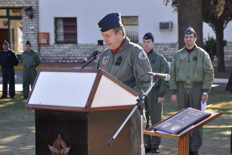 El Jefe del Grupo Aéreo Escuela, Comodoro Máximo Robertson durante su alocución. (Foto: Mauricio Chiofalo)