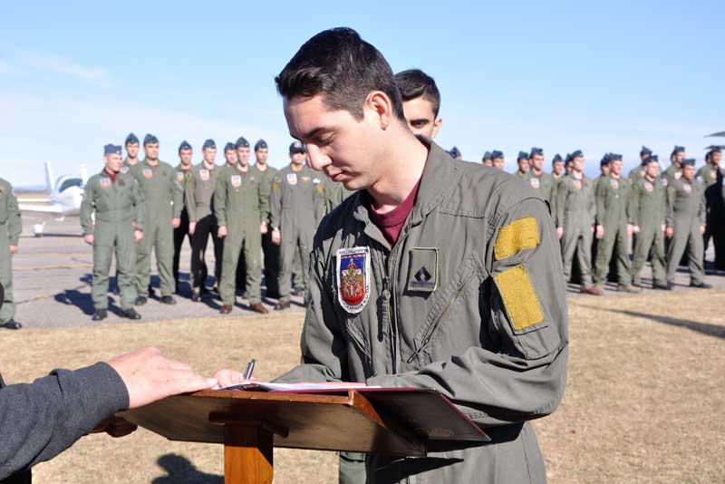 La ceremonia prosiguió con la Banda Militar de Música “Bautismo de Fuego” de la EAM que interpretó los acordes de la marcha “Alas Argentinas,” tras lo cual las autoridades saludaron a los pilotos que realizaron su vuelo solo.