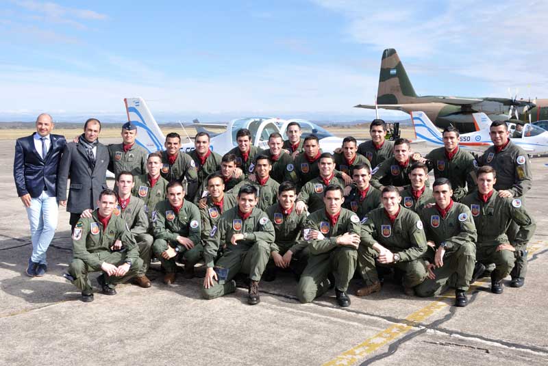 Foto grupal de los oficiales cursantes del CBCAM junto a Mario y José Cardama, titulares de la firma Aerotec. (Foto: Mauricio Chiofalo)