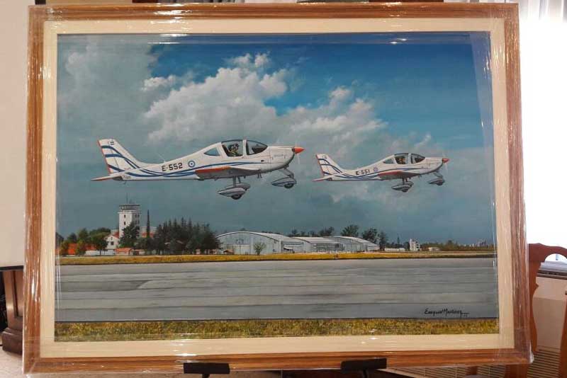 Cuadro realizado por el pintor de temas aeronáuticos Exequiel Martínez. (Foto: Mauricio Chiofalo)
