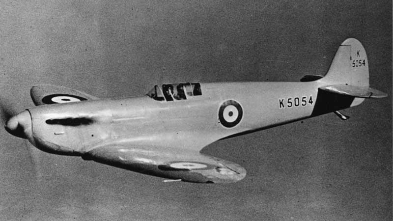 En Inglaterra, durante la década de 1930, el Ministerio del aire británico, emitió la especificación F7/30 para la construcción de una aeronave de combate de alta velocidad y corto alcance, capaz de alcanzar al menos 250 millas por hora, y llevar 4 ametralladoras. Es así que R.J. Mitchell, diseñador de la firma Supermarine (una filial de la Vickers Armstrong) tomando como base el Supermarine S6B (El hidroavión ganador del Trofeo Schneider), le agregó muchos cambios: un motor más potente, el recién construido Rolls Royce PV-XII V12 “Merlin”, y una innovación en cuanto a la aerodinámica: el ala elíptica. Este tipo de planta alar, presenta ventajas en cuanto a la distribución de sustentación y la resistencia inducida, ya que las fuerzas de sustentación se distribuyen de tal forma que la sustentación va disminuyendo desde la raíz hasta la punta, con el efecto de que las fuerzas aerodinámicas sobre la estructura se reducen en comparación con un ala rectangular; además, la reducción de sustentación en la zona cercana a la punta se realiza de manera suave, de tal forma que prácticamente no hay resistencia inducida allí (no hay formación de vórtices de punta de ala).