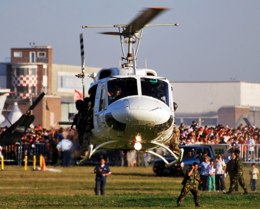 An Argentine Air Force Bell 212 demonstrating at 2009 edition of the Morón open day (photo: Esteban Brea).